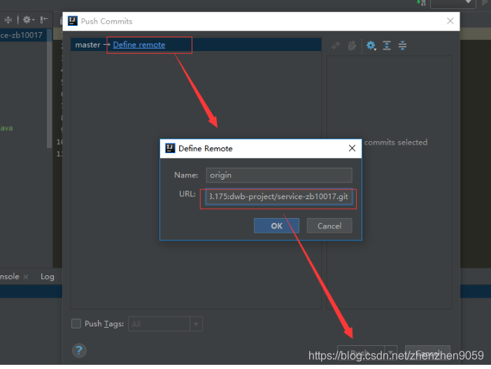 8.远程地址填写完成之后,就表示本地仓库与远程的gitlab服务关联上了,现在可以push代码到远程gitlab上了,如图所示,push完成之后会提示push successful