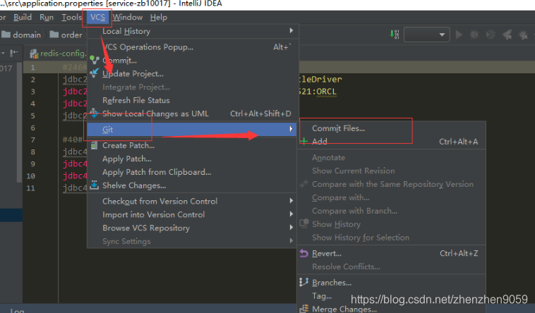 5.继续操作,VCS》Git》Commit File,然后在提交创建填写提交注释说明