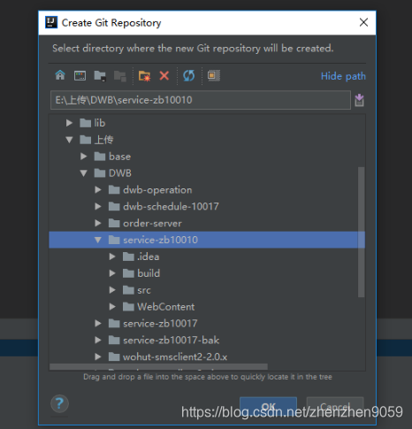 3.如果出现弹出框 ,点击确定。默认是直接定位到当前项目文件所在的磁盘目录,一般git初始化就在当前项目的根目录,不需要修改路径,直接点击OK确定即可。