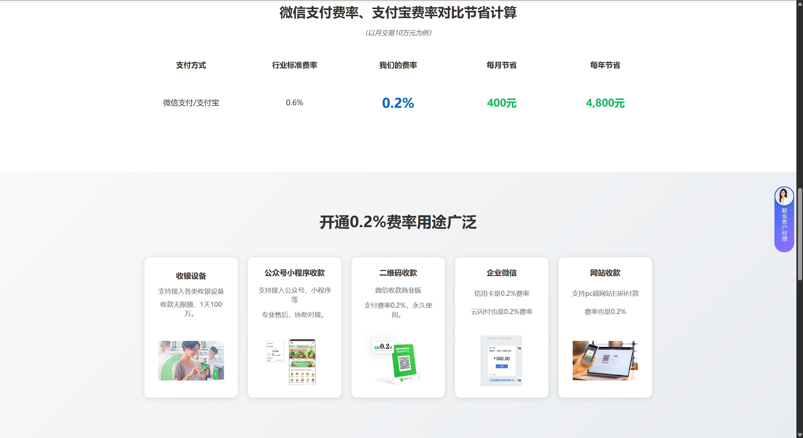 - 服务商补贴窗口:通过认证服务商接入可额外获得0.18%费率优惠。