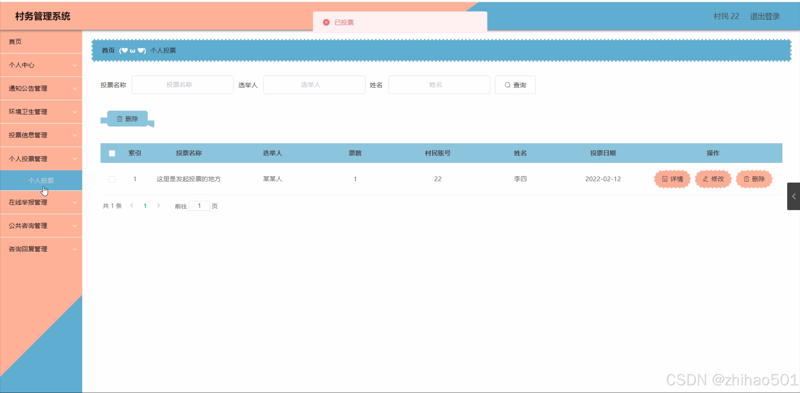 本选题针对村务管理系统等问题的研究具有重要的理论意义和现实实践意义。理论意义在于,本研究将深入分析村务管理系统的构建原理、功能模块及运行机制,丰富农村管理信息化的理论体系。现实实践意义在于,通过开发和应用村务管理系统,可以实现村民信息的数字化管理、村务信息的透明化公开、村民参与决策的网络化便捷,从而提高管理效率,增强村民满意度,促进农村和谐稳定。