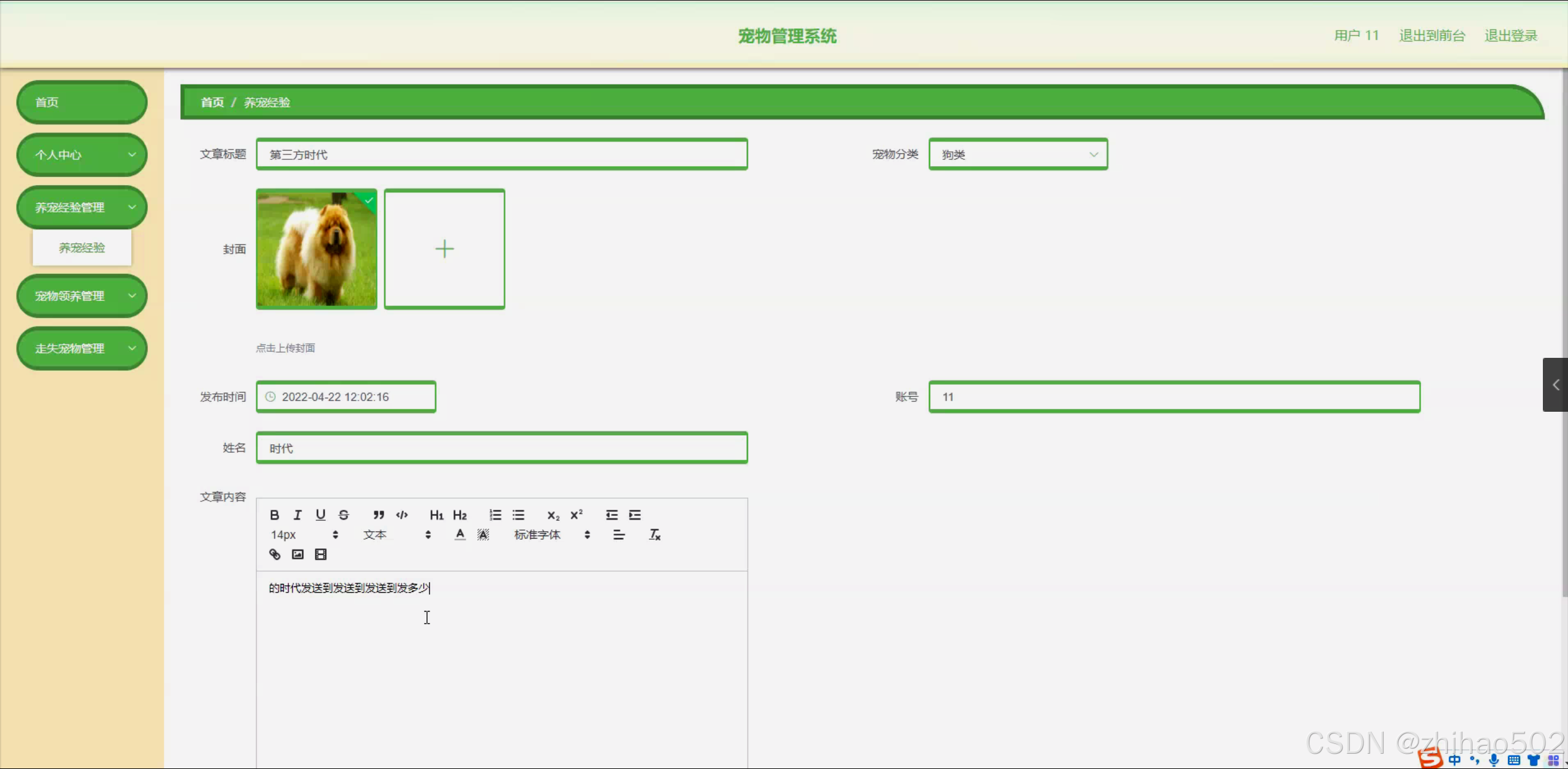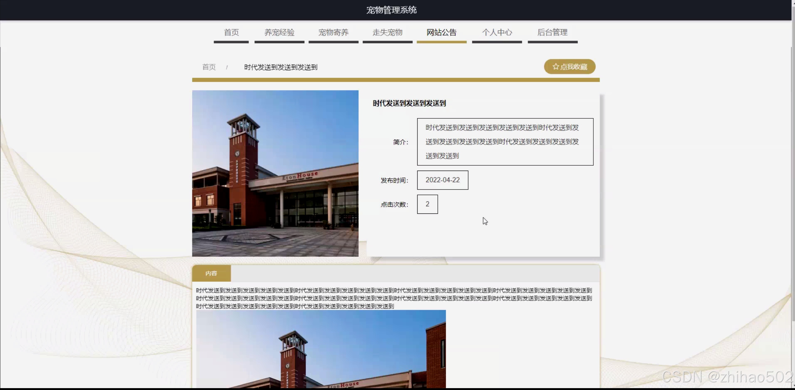 随着人们生活水平的提高和城市化进程的加速,宠物已成为许多家庭的重要成员。宠物数量的增加使得宠物管理成为一个亟待解决的问题。关于宠物管理系统的研究,现有研究主要以宠物医院管理系统、宠物商店管理系统为主,专门针对综合宠物管理(包括寄养、领养、经验分享等)的研究较少。因此,本选题将以宠物综合管理系统为研究情景,重点分析和研究宠物管理中的寄养、领养、经验分享、走失宠物找回等问题,以期探寻宠物管理系统的有效构建方式,提出对策建议,为后续更加深入的研究提供基础。通过本课题的研究,可以填补宠物综合管理系统研究的空白,为宠物主人和宠物服务机构提供更便捷、高效的管理工具。