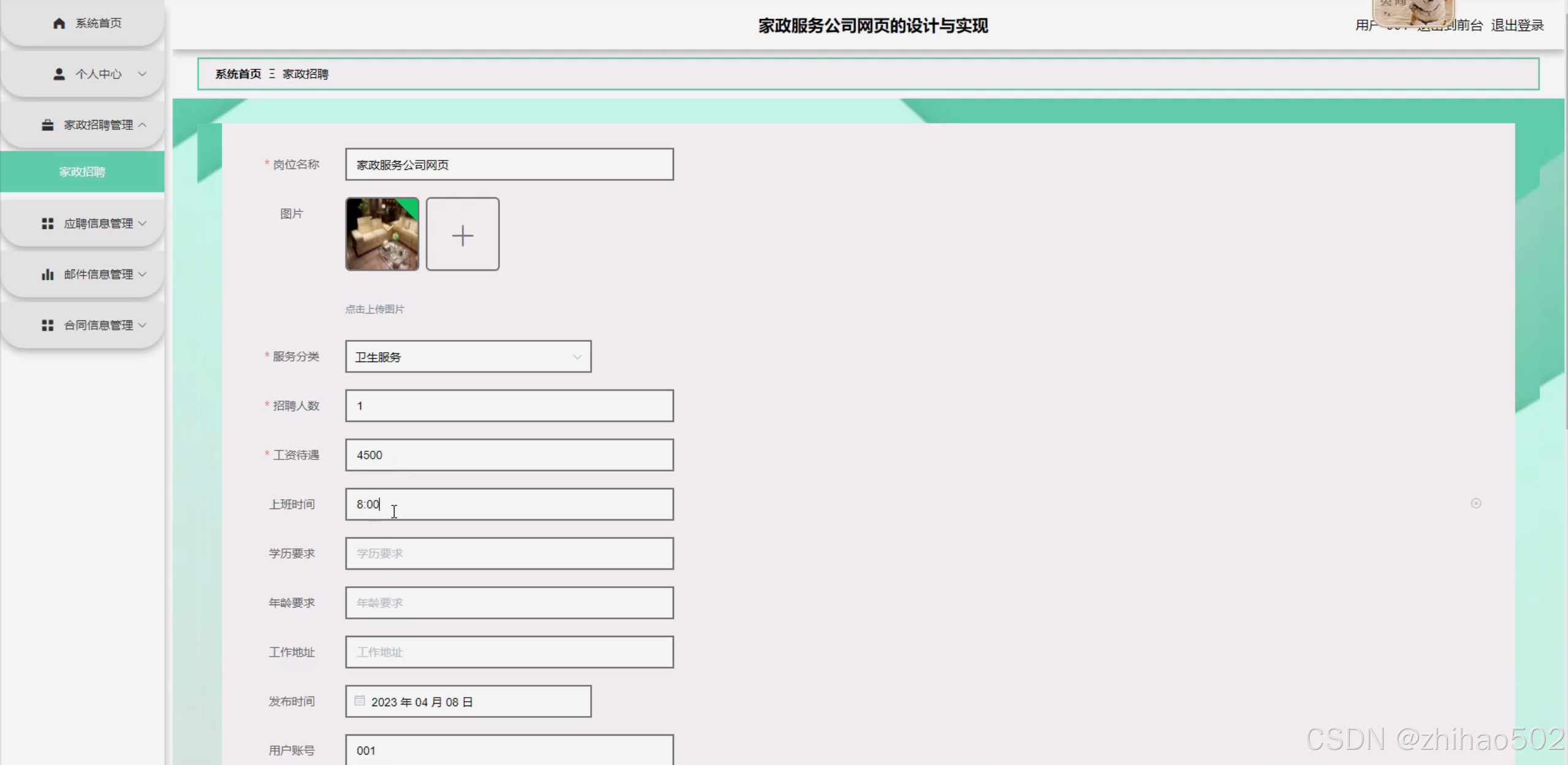 随着互联网技术的飞速发展,家政服务行业也逐渐向线上化、智能化转型。关于家政服务公司网页的设计与实现,现有研究主要集中在网页设计的美观性、用户体验以及功能实现等方面。然而,专门针对家政服务公司网页这一特定领域的研究还相对较少,特别是在系统功能整合、信息安全以及用户体验优化等方面存在诸多挑战。因此,本选题将以家政服务公司网页的设计与实现为研究情景,重点分析和研究如何构建一个功能完善、安全可靠且用户体验良好的家政服务公司网页,以期探寻家政服务线上化的有效路径,提出具有针对性的对策建议,为后续更加深入的研究提供基础。