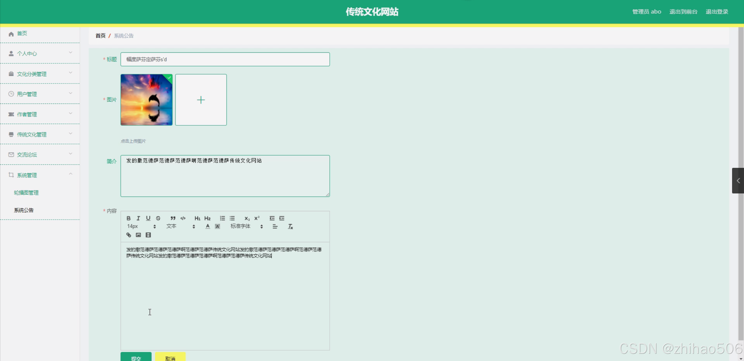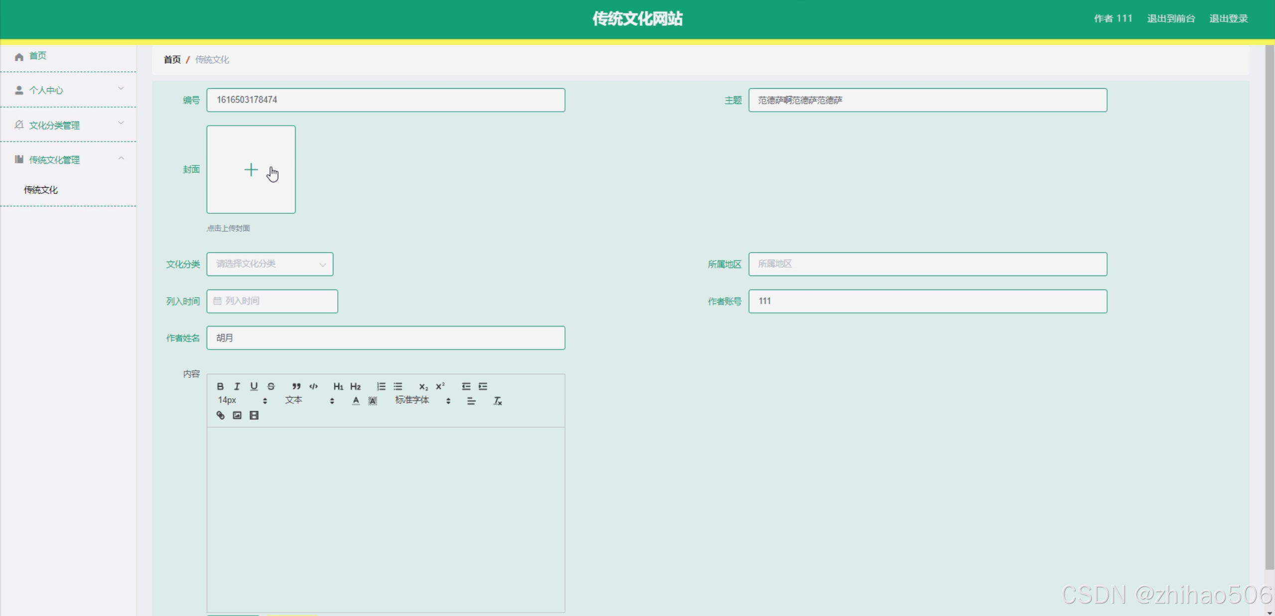 本研究将围绕传统文化网站的系统功能展开,具体包括文化分类、用户管理、作者管理和传统文化展示等功能模块。在文化分类方面,将依据传统文化的类型和特点进行分类,方便用户快速找到感兴趣的内容。在用户管理方面,将建立完善的用户注册、登录和权限管理机制,确保用户信息的安全和隐私。在作者管理方面,将提供作者注册、作品上传和审核等功能,鼓励更多传统文化爱好者参与到网站的建设中来。在传统文化展示方面,将采用多媒体技术和互动式设计,提升网站的趣味性和互动性,增强用户的参与感和体验感。通过这些功能模块的设计和优化,旨在打造一个内容丰富、功能完善、用户体验良好的传统文化网站。