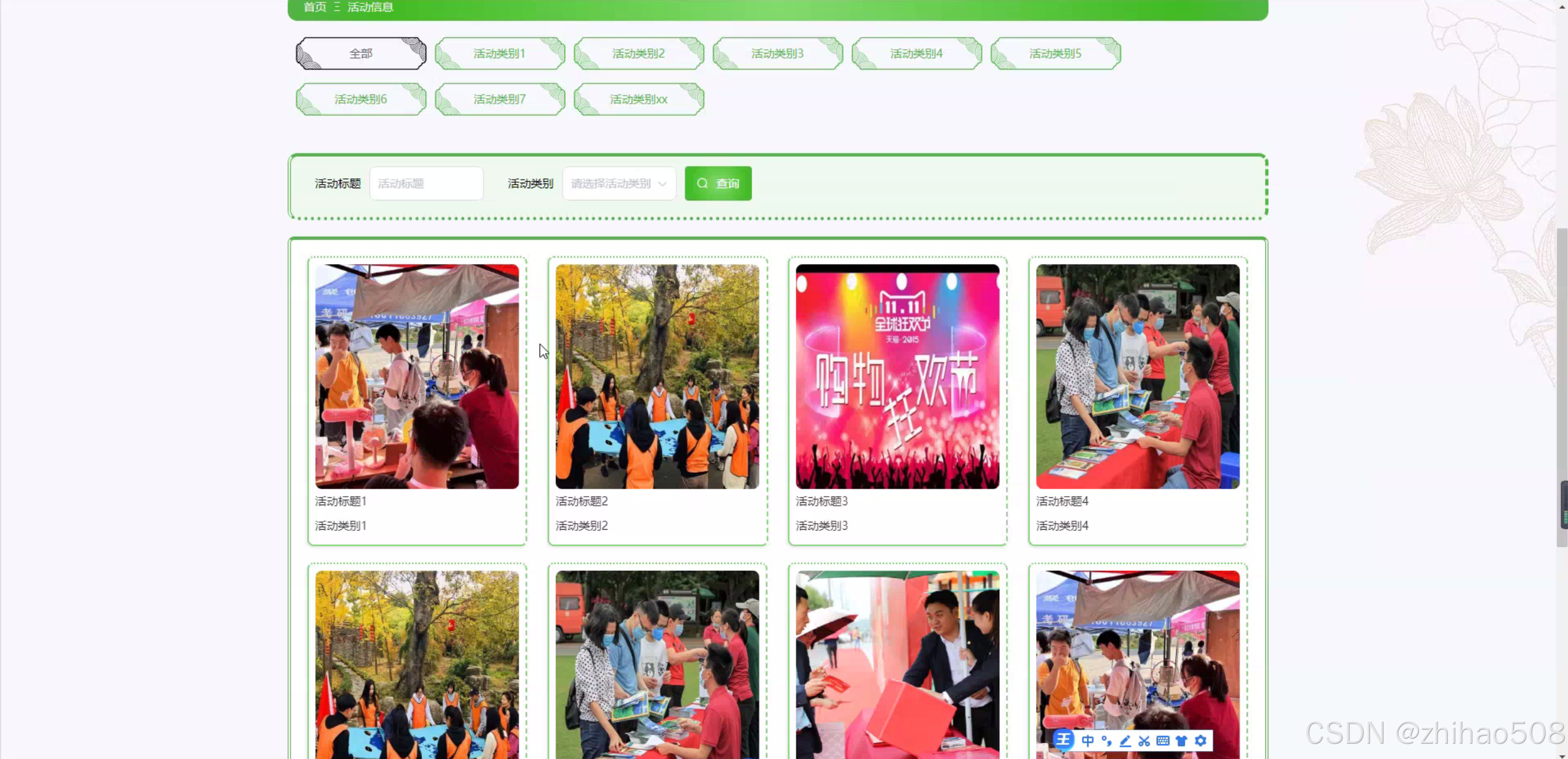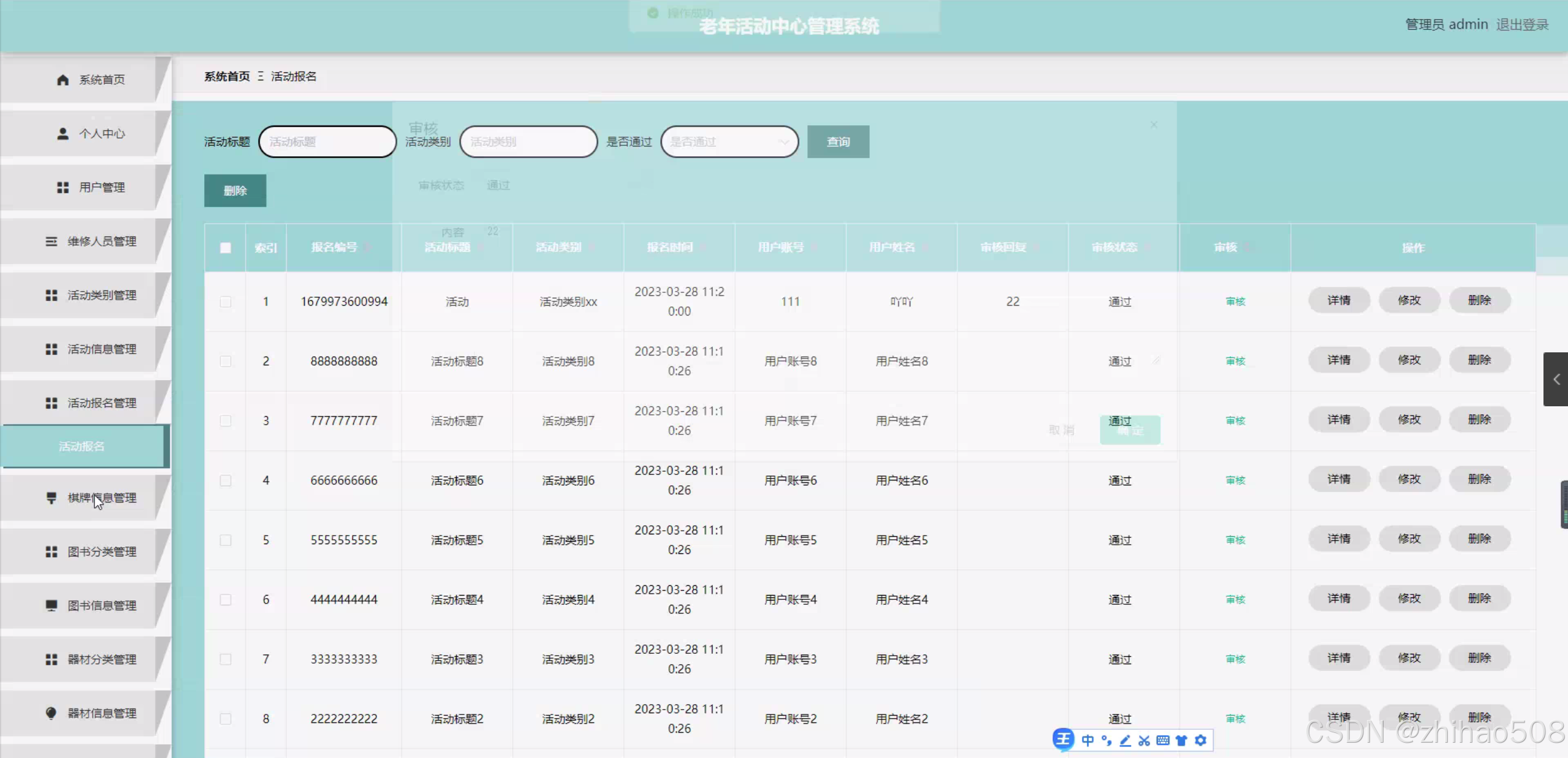 - 功能模块设计与实现:详细设计并实现用户管理模块、活动管理模块(包括活动类别、活动信息、活动报名等功能)、资源管理模块(包括棋牌信息、图书分类、图书信息、器材分类、器材信息等功能)和维修管理模块(包括报修信息、维修信息、报损信息等功能)。确保每个模块的功能和性能满足实际需求,并提供友好的用户界面和操作流程。
