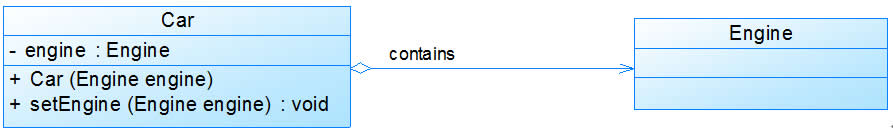 在代码实现聚合关系时,成员对象通常作为构造方法、Setter方法或业务方法的参数注入到整体对象中。
