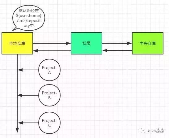 你要jar包,不可能每次都要联网去下载吧,多费劲,所以本地仓库就是相当于加了一层jar包缓存,先到这里来查。如果这里查不到,那么就去私服上找,如果私服也找不到,那么去中央仓库去找,找到jar后,会把jar的信息同步到私服和本地仓库中。