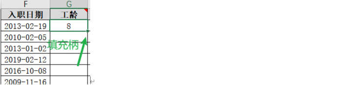 (5)填充柄的使用,双击单元格右下角的填充柄就可以按照当前单元格自动填充整列数据了。