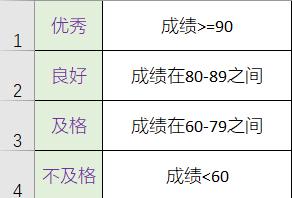 函数公式: =if(E2>=90,"优秀",if(E2>=80,"良好",if(E2>=60,"及格",“不及格")))