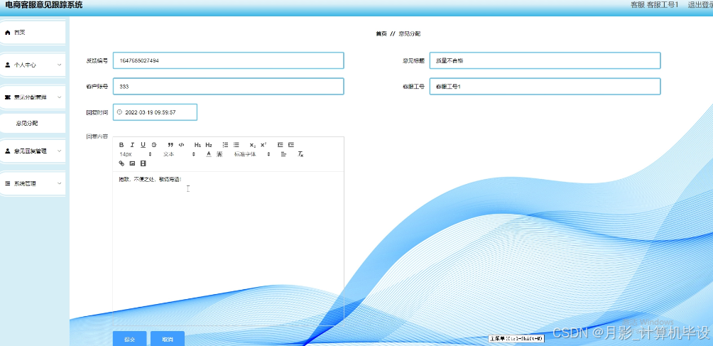 - 反馈意见功能:将客服处理后的结果及时反馈给客户,确保客户能够及时了解意见的处理情况。反馈内容要清晰明了,包括处理结果、后续措施(如果有)等。