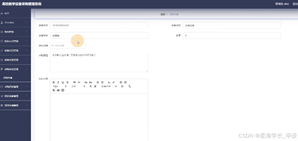 高校教学设备采购管理系统涉及多个功能模块和部门之间的协作,具体研究内容如下: