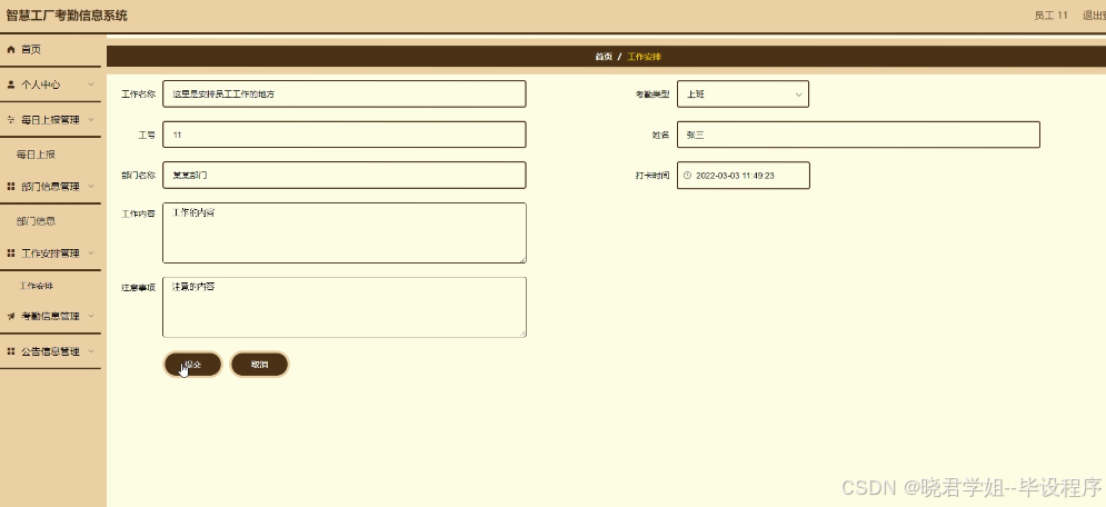 - 工作安排模块:管理者可以通过该模块发布工作任务、安排工作时间等。员工能够查看自己的工作安排,并进行任务反馈,如任务完成进度等。