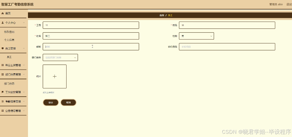 - 考勤信息模块:实现员工考勤的记录,包括打卡(如指纹打卡、人脸识别打卡等)、请假、加班等考勤情况的记录和统计。同时,考勤信息要与考勤工资计算相关联,确保工资计算的准确性。