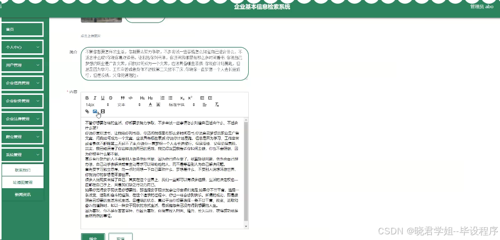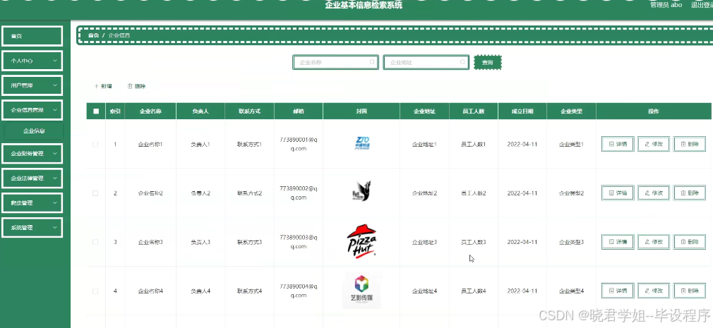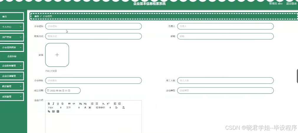 - 企业信息功能模块:包括企业基本信息(如企业名称、注册地址、经营范围等)的存储、检索和更新。如何构建高效的索引结构,以提高企业基本信息的检索速度和准确性是该模块的重点研究内容。