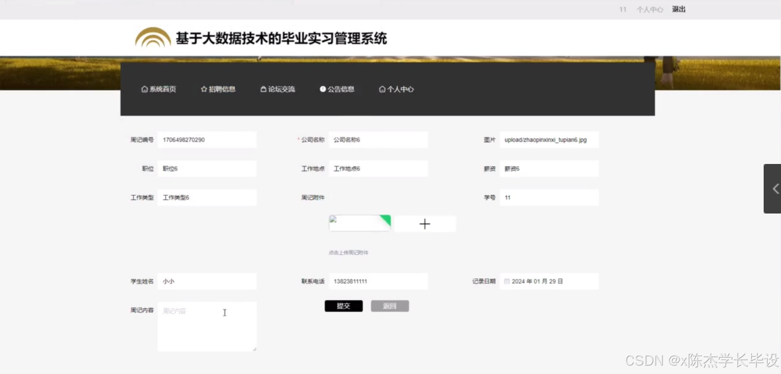 - 实习周记模块:设计合理的周记提交和管理机制,方便学生记录实习心得和问题。通过大数据技术对周记内容进行分析,挖掘学生在实习中的共性问题和成长点。