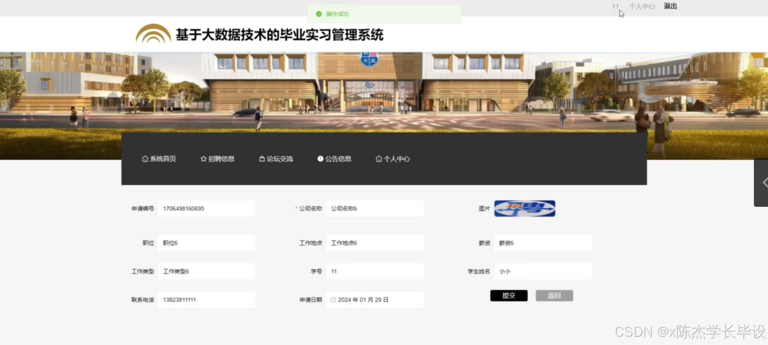 - 实习申请模块:研究如何实现实习申请流程的自动化和智能化。利用大数据分析学生的专业背景、成绩等信息,为学生推荐合适的实习岗位,并对申请过程进行全程跟踪和管理。
