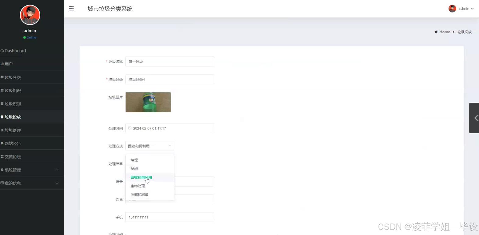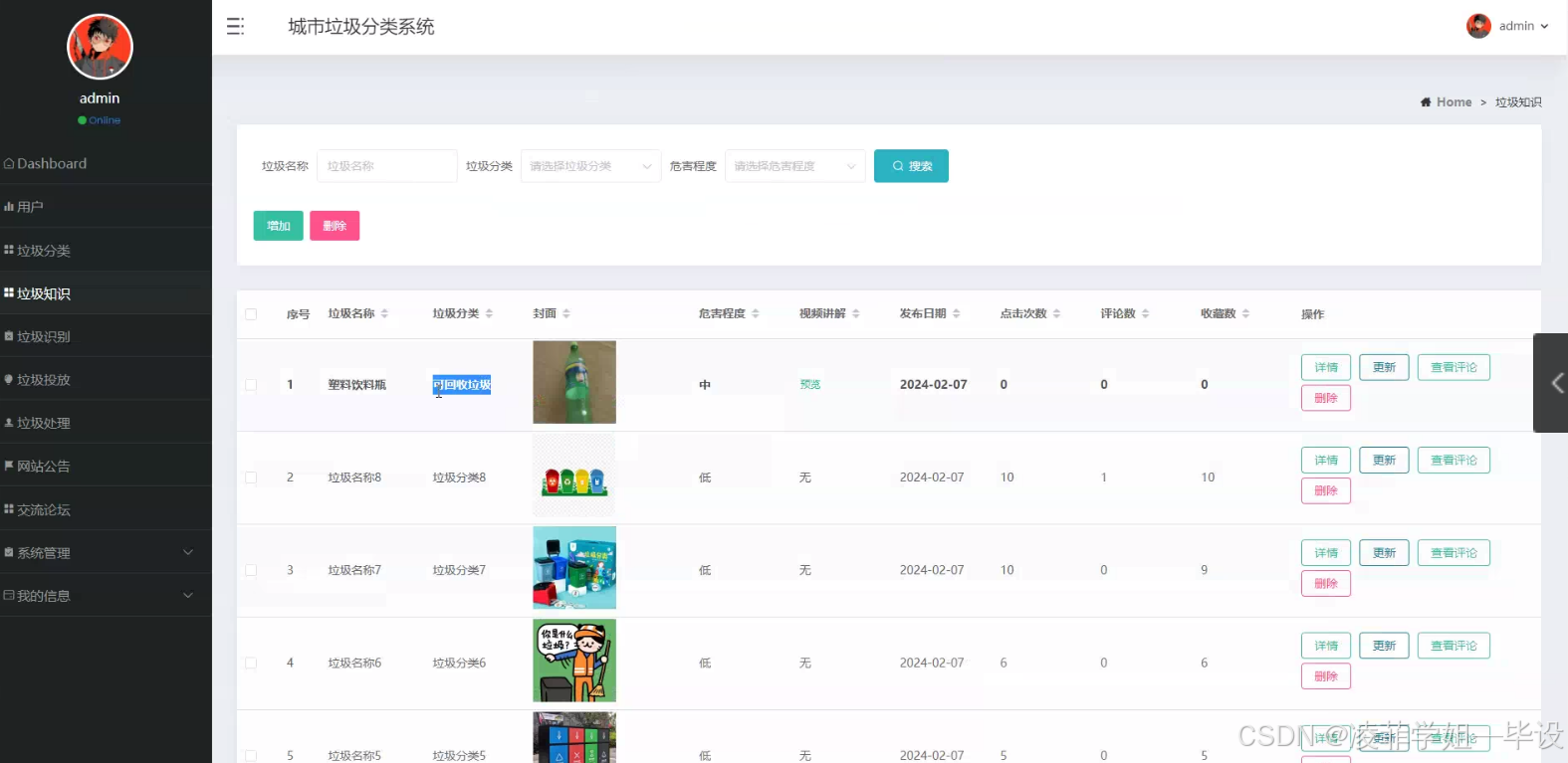 - 现实意义:通过构建城市垃圾分类系统,能够提高城市垃圾分类的效率,增强民众对垃圾分类知识的了解,提升民众参与度,从而减少垃圾对环境的污染,优化城市环境,并且有助于城市垃圾的有效处理和资源的回收利用。