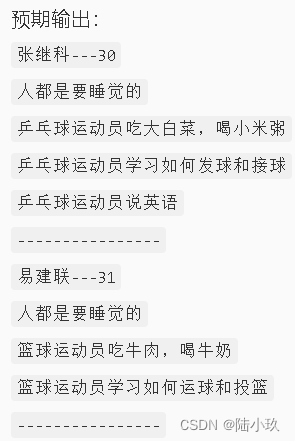 System.out.println("篮球运动员吃牛肉,喝牛奶");