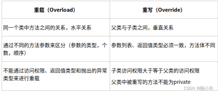 参数类型不一样或参数数量或顺序不一样;