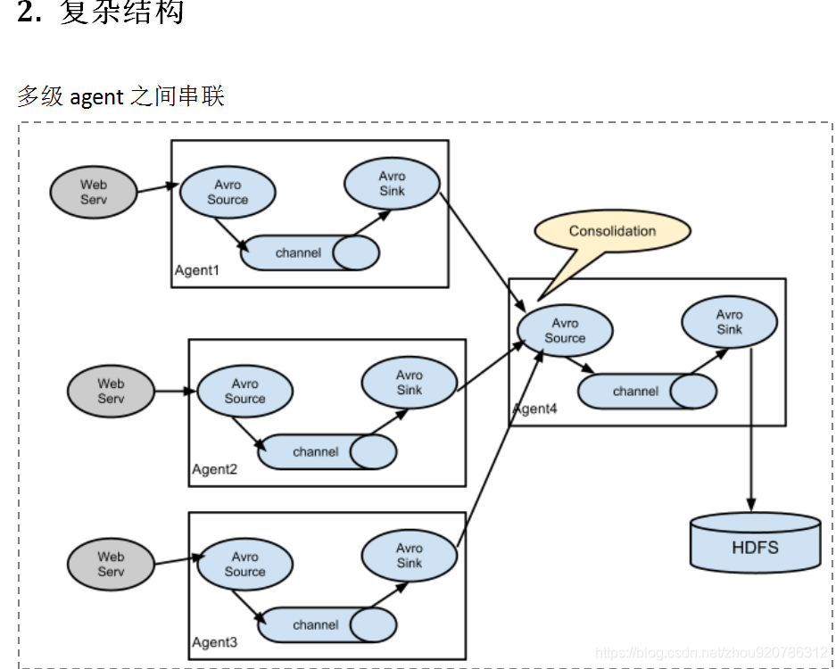 - Flume分布式系统中最核心的角色是agent,flume采集系统就是由一个个agent所连接起来形成