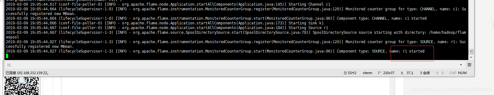 2019-03-10 02:25:12,724 (lifecycleSupervisor-1-3) [INFO - org.apache.flume.instrumentation.MonitoredCounterGroup.start(MonitoredCounterGroup.java:96)] Component type: SOURCE, name: r1 started