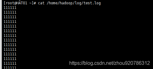 [root@HAT01 conf]# echo "222" >> /home/hadoop/log/test.log