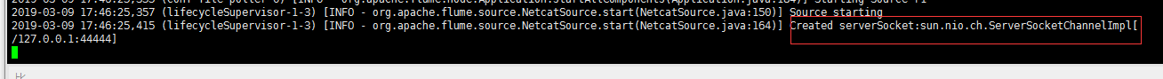 2019-03-10 02:25:47,579 (lifecycleSupervisor-1-3) [INFO - org.apache.flume.instrumentation.MonitoredCounterGroup.start(MonitoredCounterGroup.java:96)] Component type: SOURCE, name: r1 started