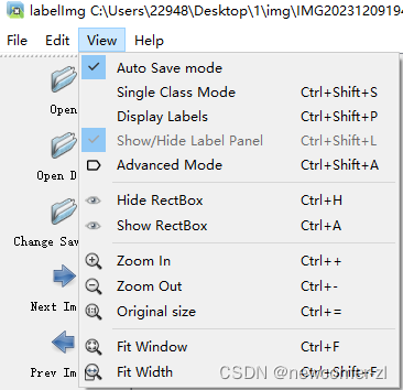 解决方法:在labelimg软件中,点击view,然后可以看到display labels选项,我们勾选上后就可以看到标签文本了。