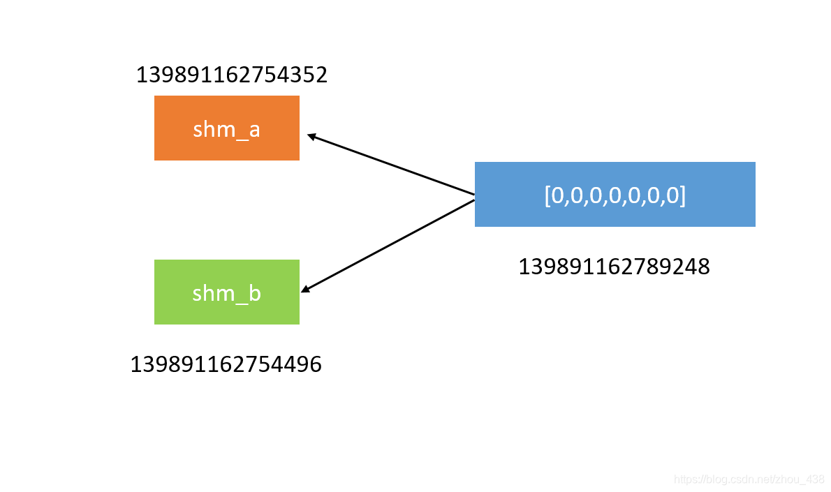 我们从图上看出,shm_a和shm_b是共用的一份数据,并不是是一个东西,因为他们三者的地址根本不是一样的,但是shm_a和shm_b使用的是一个内存块