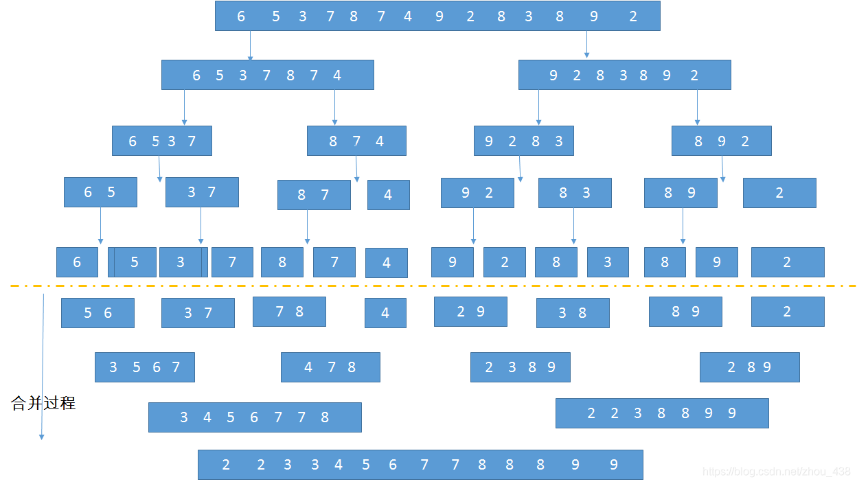 归并排序,见名知意,就是递归+合并