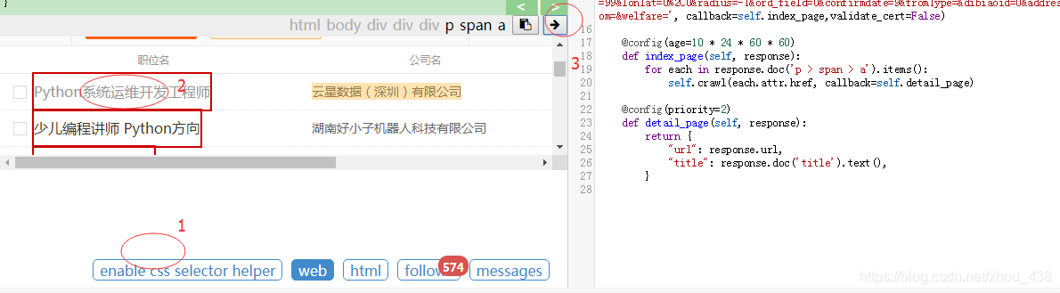 我们直接使用pyspider给我们提供的选择器,按照上面操作即可
