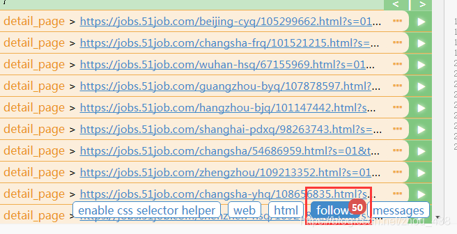 现在只有50个,说明前程无忧给我们默认的是每一页50个岗位