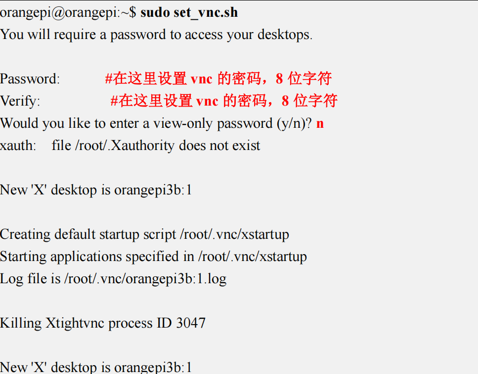 设置好之后, 在你的 Linux terminal 中输入下面指令, 要求用密码形式来开启 VNC 的 server.