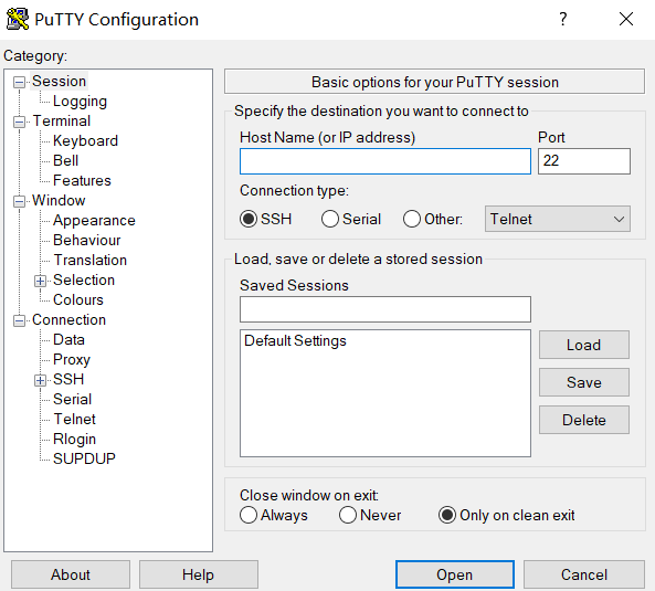 在 Host name (or IP address) 那填上被控制的 Linux 的 IP,最后点击Open