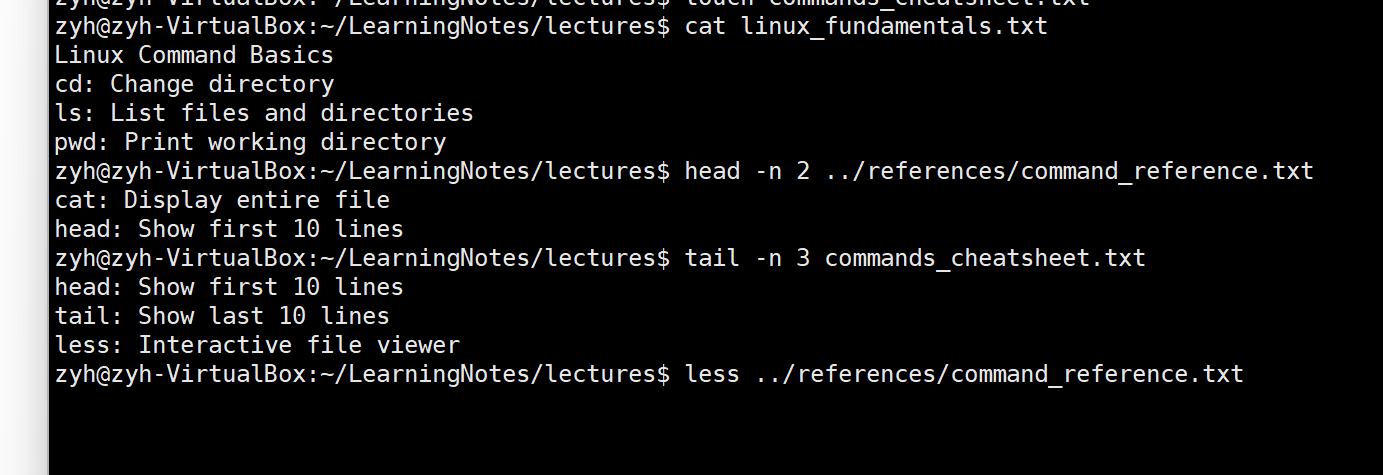 • 查看command_reference.txt的前两行内容