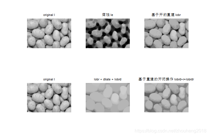subplot(236);imshow(Iobrdr);title('基于重建的开闭操作 Iobrd+r=Iobrdr');