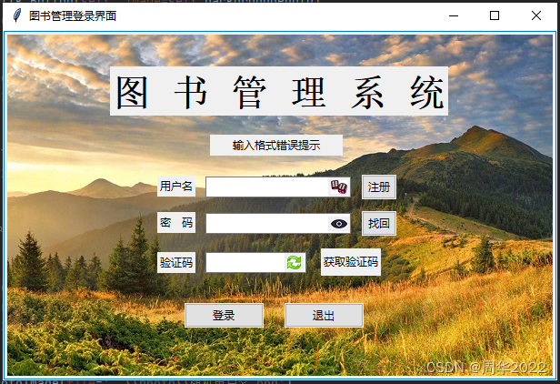 本项目将分段设计“图书管理登录UI界面”的用户登录、用户注册、用户账号找回等。主要围绕GUI标准库tkinter、以及类的继承(重点)来设计本项目。