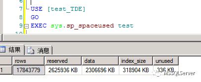 数据库test_TDE表test的空间使用: