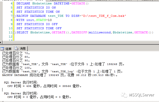 已为数据库'test_TDE',文件'test_TDE' (位于文件1 上)处理了193248 页。