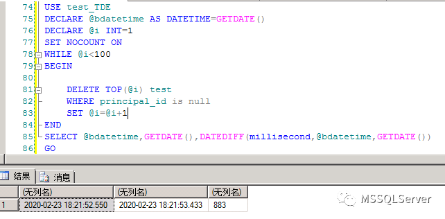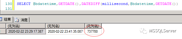 SELECT @bdatetime,GETDATE(),DATEDIFF(millisecond,@bdatetime,GETDATE())