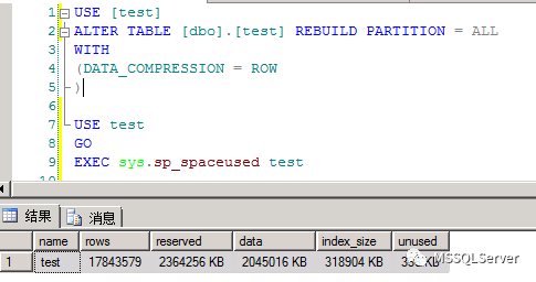 ALTER TABLE [dbo].[test] REBUILD PARTITION = ALL
