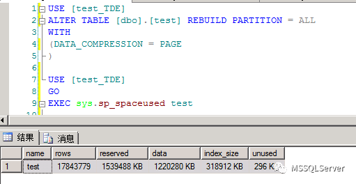 页压缩后test_TDE数据中表test存储使用空间: