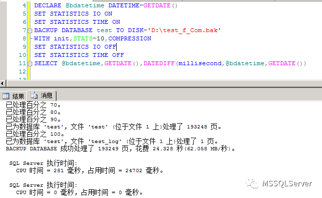 BACKUP DATABASE 成功处理了193249 页,花费24.328 秒(62.058 MB/秒)。
