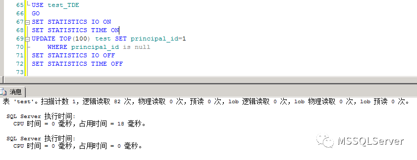 发现TDE的UPDATE逻辑读、时间消耗均低于非加密数据库。