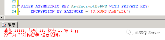 值得注意的是,私钥一旦移除,就不能使用ALTER ASYMMETRIC KEY 添加了: