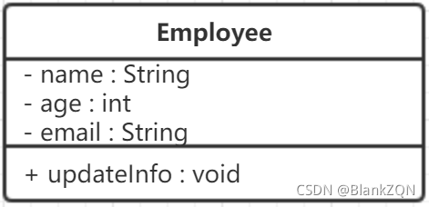 因此,上图中的Employee类具有3个私有属性和一个公有方法。
