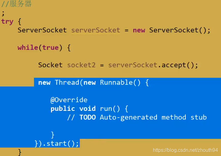 - 服务端在接收客户端套接字请求时,accept() 方法阻塞等待:一直等到有客户端接入时才往下执行。