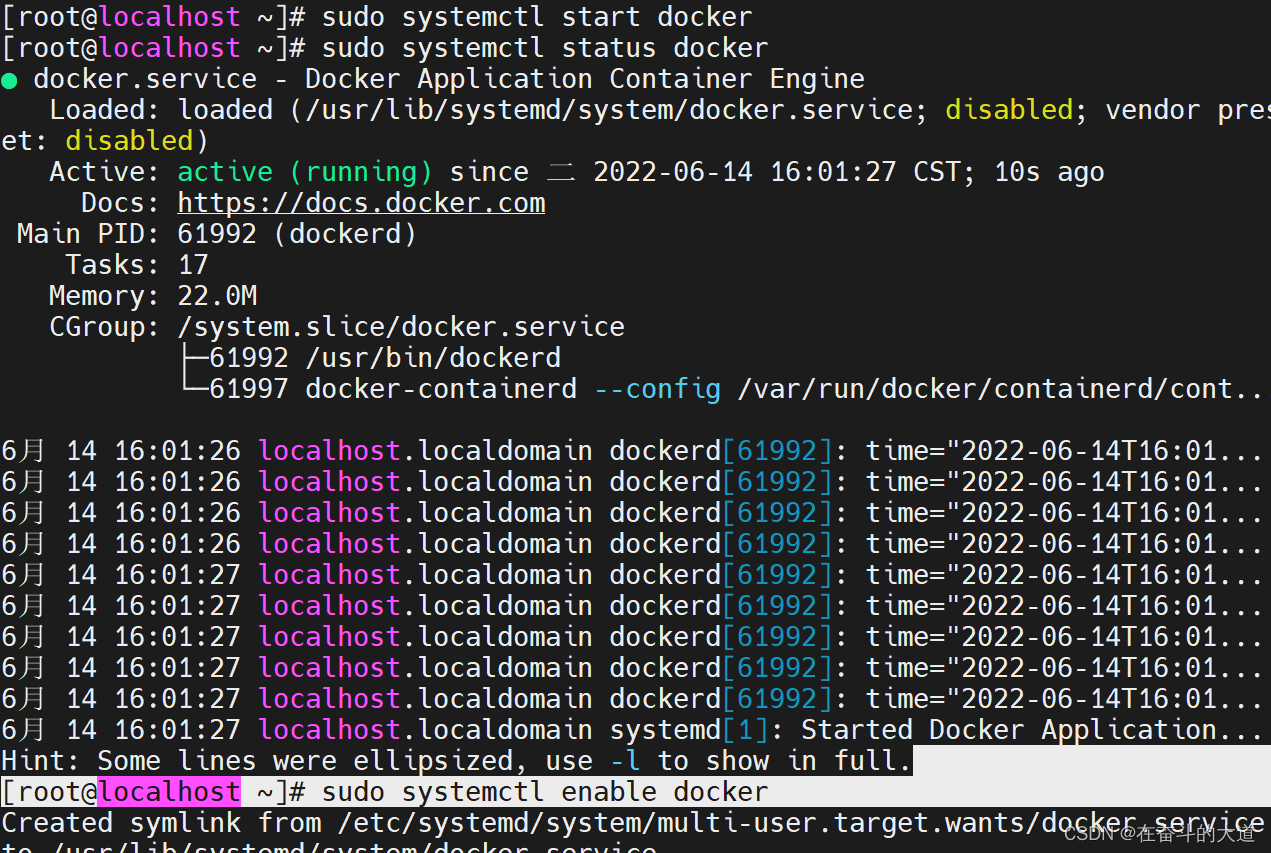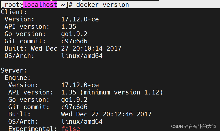9、验证安装是否成功(有client和service两部分表示docker安装启动都成功了)