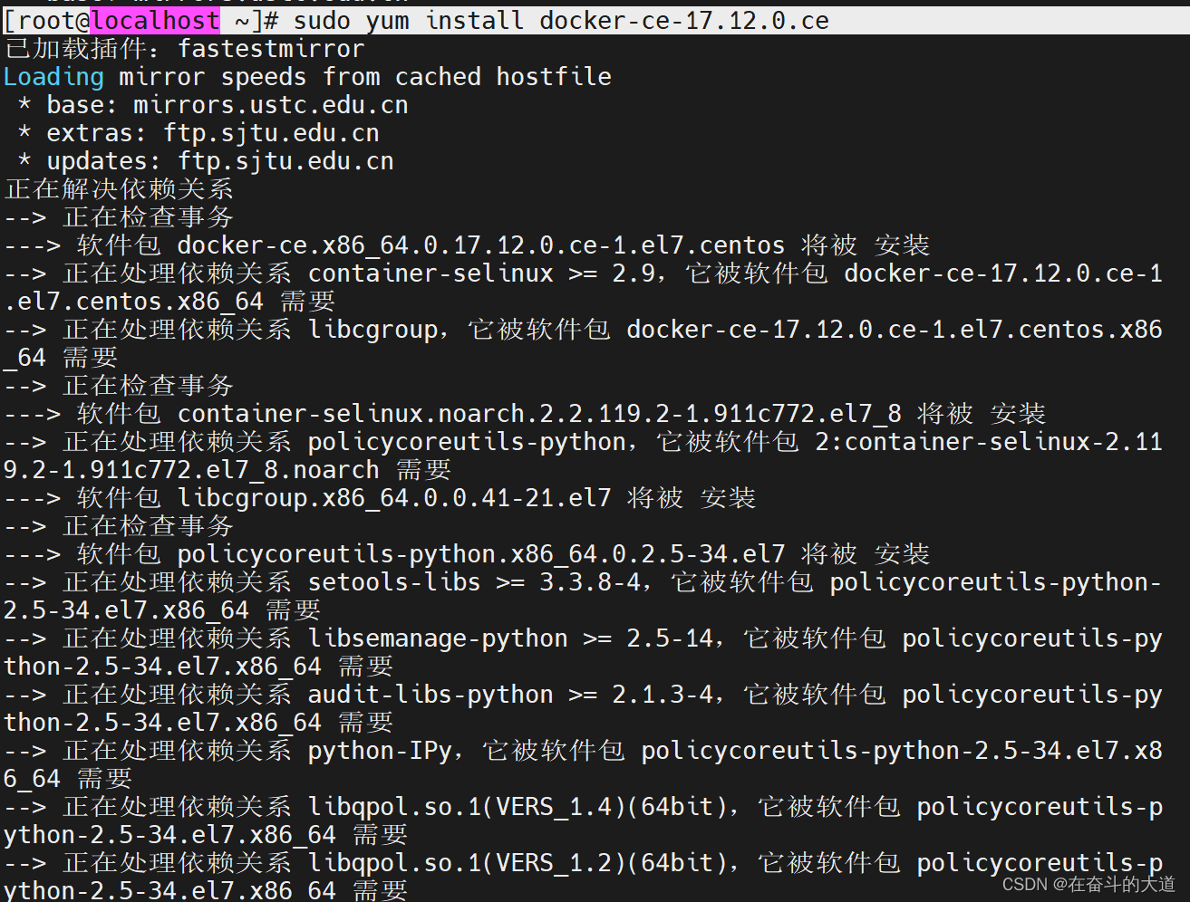 [root@localhost ~]# sudo yum install docker-ce-17.12.0.ce