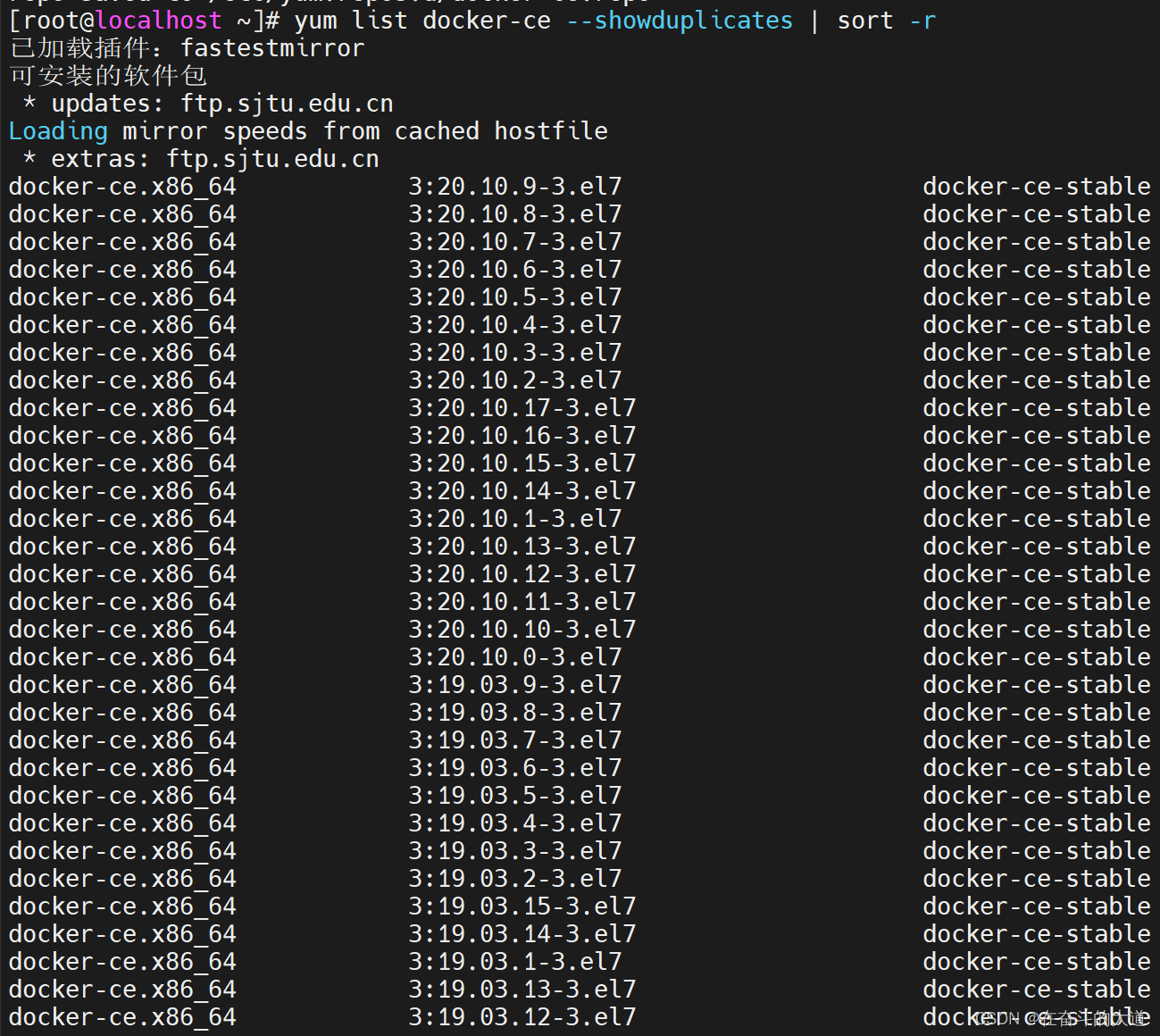 [root@localhost ~]# yum list docker-ce --showduplicates | sort -r